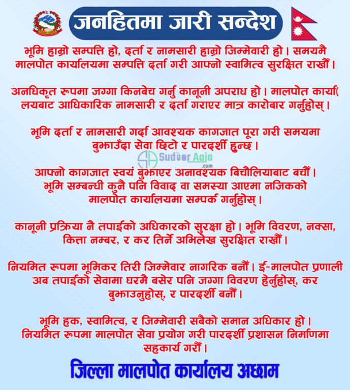 अछाम ः सेवाग्राहीको चाँपलाई मध्यनजर गर्दै जिल्ला प्रशासन कार्यालय अछामले जोर बिजोर सेवा प्रणाली लागु