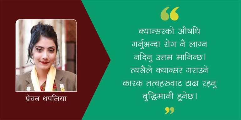 जीवनको सबैभन्दा ठूलो सत्य हो मृत्यु। तर हामी जिन्दगीलाई अमर जस्तै मानेर छणिक रमाइलोमा आफैंलाई बिर्सन्छौं। त्यसैले सानो लापरबाहीले गर्दा मृत्युसँग सम्झौता गर्न पुग्छौं। त्यही लापरबाहीका कारण क्यान्सर जस्तो खतरनाक रोगले जन्म लिन्छ।