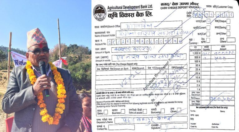 कोरोना भाईरस नियन्त्रण तथा रोकथाम कोषमा नगरप्रमुख बोहरा द्वारा १ लाख ५ सय जम्मा