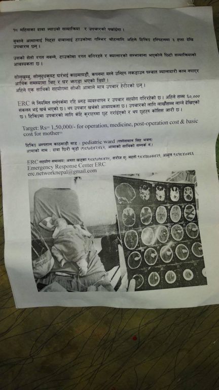 सोलुखुम्बु जिल्लामा घर भइ हाल अस्थायी रूपमा काठमाण्डौँमा बस्दै आएका उक्त परिवारको छोराको उपचारको सहयोगार्थ आर्थिक सहयोग गरिएको अध्यक्ष बुढाको भनाई छ ।