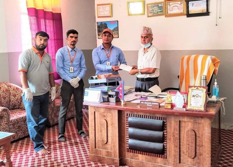 संस्थाका शाखा प्रबन्ध हिमाल सिंह बिष्टले नगद रु. १० हजार नगर प्रमुख कुल बहादुर कुवँरलाई हस्तान्त्रण गर्नुभएको छ ।