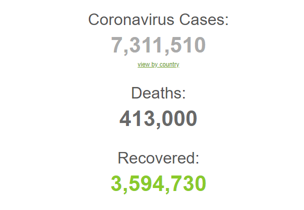 यस्तै ७३ लाख ११ हजार ५ सय १० जनामा कोरोना संक्रमण भएको छ, भने विश्वभर अहिलेसम्म ३५ लाख ९४ हजार ७ सय ३० जना निको भइसकेका छन्।