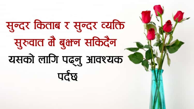 ६. सुन्दर किताब र सुन्दर व्यक्ति सुरुवात मै बुझ्न सकिदैन यसको लागि पढ्नु आवश्यक पर्दछ ।