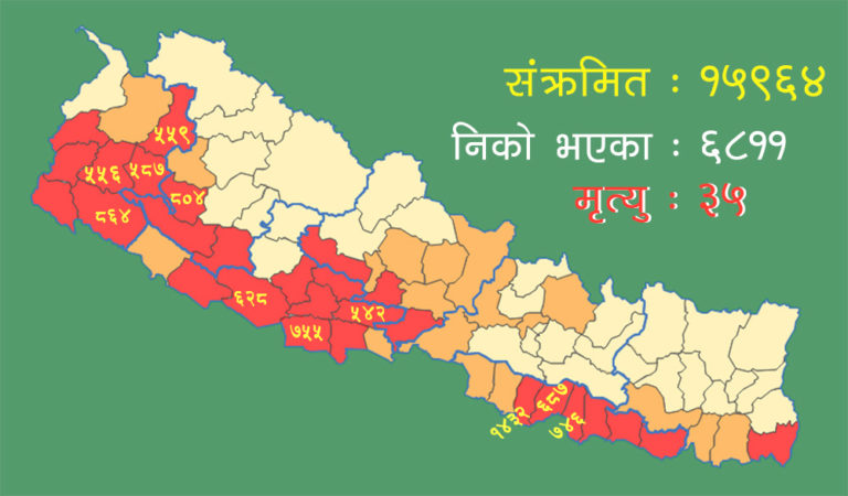 देशभर १५ हजार ९६४ संक्रमित, ११ जिल्लामा ५ सयभन्दा बढी संक्रमित