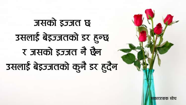 २. कठिन समयमा नै सबैको रङ देखिन्छ, दिनको उज्यालोमा त पानीपनि चाँदी जस्तो देखिन्छ ।