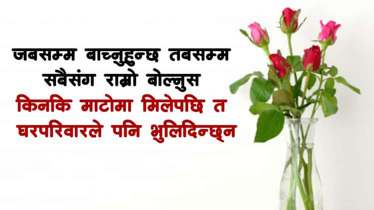 ९. सम्बन्ध मनले जोड्छ, मुखको बोलीले हैन ! केही मान्छे धेरै गफ गरेर पनि आफ्ना हुदैनन्, कोहि मौन रहेर पनि आफ्नो बनिदिन्छन ।