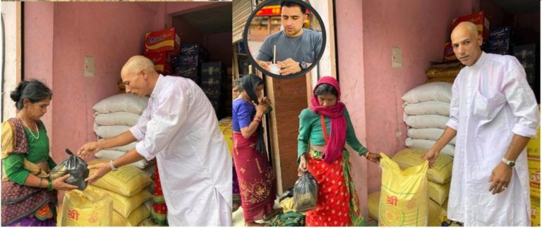 दाउरा बेचेर गुजारा चलाउनेलाई समाजसेबी कुँवरले गरे खाधान्न सहयोग