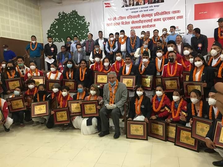कांग्रेस खेलकुद विभागले आयोजना गरेको विशेष कार्यक्रममा सभापति शेरबहादुर देउवाले स्वर्ण पदक विजेतालाई प्रति खेलाडी १० हजारका दरले सम्मान गरेका थिए । एकभन्दा बढी पदक जित्ने खेलाडीहरुलाई थप पाँच हजार दिइएको छ ।