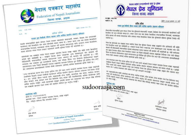 साथै महासंघ अछामले सहयोग संकलन अभियानमा एकद्धार प्रणाली कायम होस् भनेर शाखाको अछाम स्थित नेपाल पत्रकार महासंघ जिल्ला, शाखा अछामको नाममा राष्ट्रिय वाणिज्य बैँक मंगलसेन शाखा रहेको खाता नं. ४२६०००५१७५०१ मा रकम जम्मा गर्न समेत अपिल गरेको सचिव साँउदले बताए ।