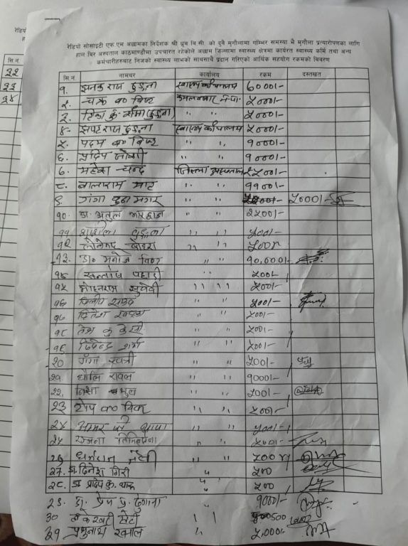 पहिलो दिन स्वास्थ्य कार्यालय, जिल्ला अस्पताल र कमलबजार नगरपालिका स्वास्थ्य शाखाका स्वास्थ्यकर्मि तथा कर्मचारीबाट ६२ हजार १ सय रुपैयाँ सँकलन भएको बताईएको छ ।