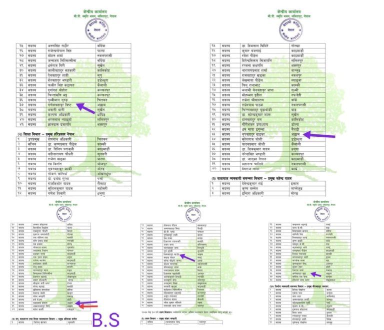 जसमा संगठन विभाग सदस्यमा महासमिती सदस्य गणेश बहादुर विष्ट, शिक्षा विभाग सदस्यमा नृप बहादुर खडका, संघिय मामिला तथा प्रदेश समन्वय विभागमा यज्ञ प्रसाद ढकाल र अक्कल बहादुर विष्ट, स्थानिय तथा समन्वय विभाग सदस्यमा कर्ण बहादुर बूढा, निर्माण व्यवसायी समन्वय विभाग सदस्यमा भिम बहादुर साउँद मनोनित भएका हुन् ।