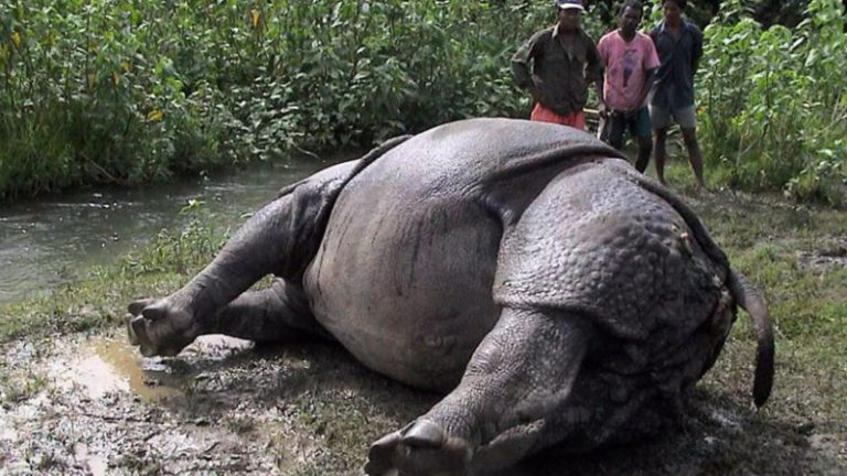 राप्तीको जोतुवा घाट नजिकै राप्तीदुन सामुदायीक वनको घोलको दलदलमा फसेर आज एउटा गैंडा मृत अबस्थामा फेला परेको हो।