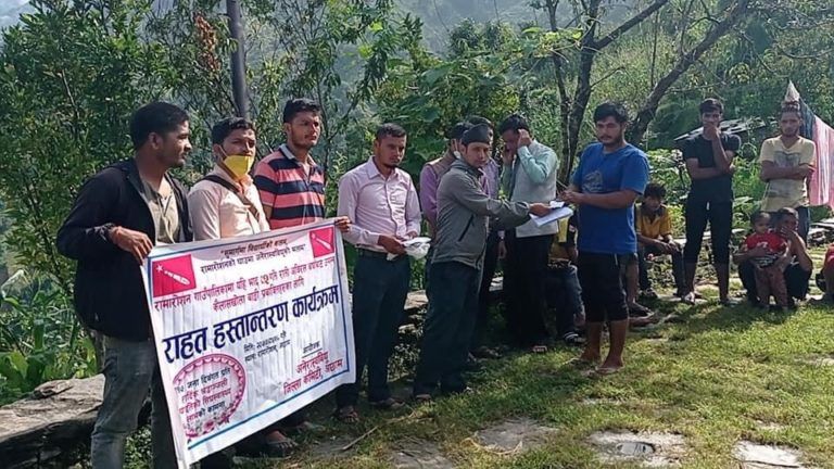 साफेबगर क्षेत्रमा सँकलित ८५ हजार अार्थिक रकम पिडितको घर वडा नम्बर ५ नेटाकोट पुगेर हस्तान्तरण गरिएको हो । नेपाल कम्युनिष्ट पार्टि (नेकपा) अछामका जिल्ला कमिटि सचिवालय सदस्य तथा बिद्यार्थी ईन्चार्ज भीम रावलो नेतृत्वमा गएको एक बिदार्थि सँगठनको टोलिले राहत स्वरुप अार्थिक रकम हस्तान्तरण गरेको हो ।