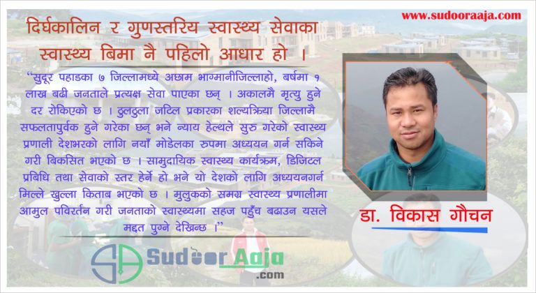 स्वास्थ्य सेवा भनेको अल्पकालिन होईन सधैँ चाहिने कुरा हो, दुर्गममा दिर्घकालिन गुणस्तरिय स्वास्थ्य सेवाका लागि हरेक नागरिकको स्वास्थ्य बिमा पहिलो आधार हो भने ३ तहकै सरकार, जनप्रतिनिधी, राजनितिक दल तथा हरेक नागरिकले जिम्मेवारी बोध गरे कोही पनि स्वास्थ्यको पहुँच बाहिर रहदैँनन् ।