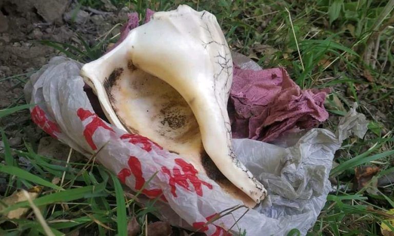 रातो प्लास्टिकभित्र सेतो प्लास्टिक र सेतो प्लास्टिकभित्र फाइबरकाे झोलामा बेरेर राखेको अवस्थामा दाहिने शङ्ख भेटिएकाे इन्स्पेक्टर भट्टराईले बताए । यसअघि चन्दननाथ नगरपालिका १० का स्थानीय सुशील विष्टको खेतको आलीको सुकेको घाँसको थुप्रोमा दोसल्लामा बेरिएको अवस्थामा अन्य दुई मूर्ति भेटिएकाे थियाे ।