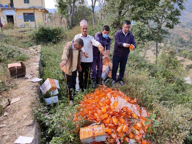 यसै बिच सोमबार बिहान अनुगमन गर्दा सुन्तलाबाडी नजिकै ढकाल जनरल स्टोरबाट इजाजत बिना बिक्रीका लागी राखिएको अवस्थामा बियर ४५ बोत्तल, भर्जिन २ पेटी, रेन्बो २ पेटी,डायमण्ड १ पेटी र नजिकै रहेको तिर्थराज ढकालको पसलबाट बियर ९ बोत्तल , अवैध घरेलु मदिरा २९ पोका बरामद गरि कानुन बमोजिम कारबाही गरिएको प्रसाशक माझीले रेडियो पञ्चदेवल तथा सुदुर आजलाई जानकारी दिए ।