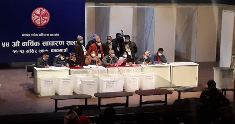 काठमाडौं । नेपाल उद्योग वाणिज्य महासंघको ५४औं वार्षिक साधारण सभा अन्तरगत आज सम्पन्न मतदानको मतगणना सुरु भएको छ । प्रमुख अधिकृत उपेन्द्र केसरी न्यौपानेका अनुसार रारति १२ बजे सम्ममा अन्तिम मत परिणाम आइसक्ने छ । प्रज्ञा प्रतिष्ठान कमलादीमा मतगणना जारी छ ।