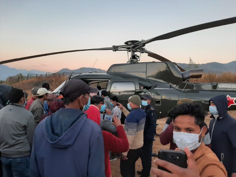 उनीहरुलाई नेपाली सेनाको हेलिकप्टर मार्फत नेपालगंज लगिएको हो।