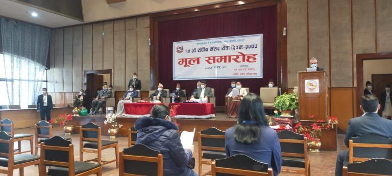 काठमाडौं- राष्ट्रियसभा अध्यक्ष गणेशप्रसाद तिमिल्सिनाले स्वास्थ्य मापदण्ड पालना गर्दै संसदको हिउँदे अधिवेशन सञ्चालन हुने बताएका छन्। नयाँबानेश्वरस्थित संघीय संसद भवनमा आइतबार आयोजित १४औं संघीय संसद सेवा दिवस-२०७७ को मूल समारोहलाई सम्बोधन गर्दै अध्यक्ष तिमिल्सिनाले संसद अधिवेशन छिट्टै आह्वान हुने बताएका हुन्।