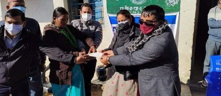मंगलसेन नगरपालिका वडा नम्बर ५ मा कम्पनीले स्वर्गीय गुप्तप्रसाद ढुंगानाकी श्रीमती प्रमिला ढुंगानालाई बीमा दाबी वापत रकम रु ५ लाख १५ हजार १ सय ९३ रुपैयाँको चेक मगलसेन उप शाखा प्रमुख पदम बहादुर थ्यायतले घरमै पुगेर एक कार्यक्रमका बिच हस्तान्तरण गरे।