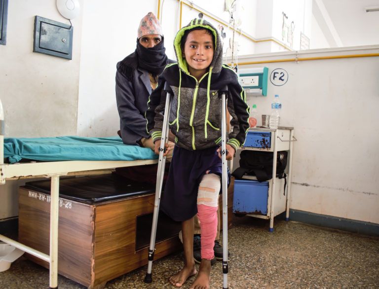 खुट्टाको सफल शल्यक्रियापछि खुशी देखिएका ११ बर्षिय महेन्द्र