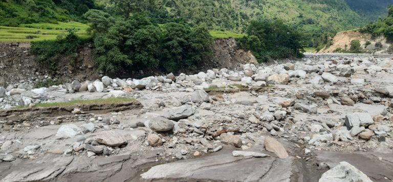“ज्याँन मात्रै बच्यो बाँकी त मेरो सर्वनाश भएको छ,” साउदले भने- “उद्योगका ८ वटा घर सहित १५ रोपनी जग्गा र ४० मुरी धान फल्ने खेत गरि ३५ रोपनी खेत बगर बनेको छ ।”आफ्नो सर्वस्व बाढीले लगेपछी हाल भोकमरीको समस्या भैसकेको उनले बताए । गाउँपालिकाले क्षतीको तथ्यंक लिने बाहेक राहतका लागि आफुलाई कुनै निकायबाट पहल नभएको उनले गुनासो गरे । क्षतीको पिडाले कतिबेला मन उदास हुने र गाउँ नै छोडेर जाउँ जस्तो लाग्ने तर सरकारले हेरेपछी यतै केह गरेर देखाउन सक्छुं भन्ने आँट पनि आउने गरेको उनले सुनाए ।