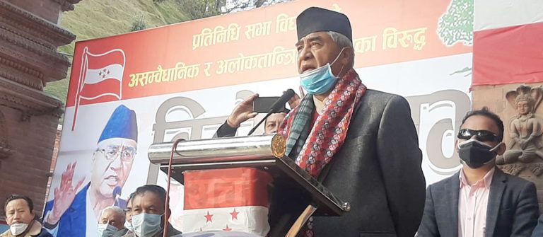 काठमाडौं । कांग्रेस सभापति शेरबहादुर देउवाले अदालतमा विचाराधीन मुद्दामा नबोल्ने बताएका छन् । देउवाले भक्तपुरमा आयोजित पार्टीको विरोध सभामा बोल्दै यस्तो बताएका हुन् ।