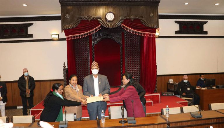 काठमाडौं । सभामुख अग्निप्रसाद सापकोटाले प्रधानमन्त्री केपी ओलीलाई प्रतिनिधिसभा विघटन गर्ने अधिकार नै नभएको बताएका छन् । विभिन्न दलआबद्ध महिला सांसदहरूको ध्यानाकर्षण पत्र बुझ्दै उनले यस्तो बताएका हुन् ।