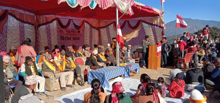 जिल्लाको ढकारी गाँउपालिकामा आयोजित बिरोध सभालाई सम्बोधन गर्दै सभापति स्वाँरले नेकपाको सरकारले देशका सोजा जनतालाई गुम्राहमा रोखेर संबिद्यानको उलंघन गरेको आरोप लगाए ।