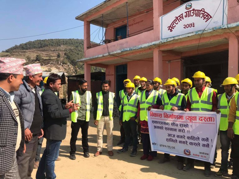 अछाम : मेल्लेख गाउँपाालिकाले बिकास निमार्ण कार्यमा युवाहरुलाई परिचालन गरेको छ । पालिका भित्र हुने बिकास निमार्णका कार्यमा युवाहरुलाई सहभागिता गराई रोजगार सिर्जना गरेको छ ।