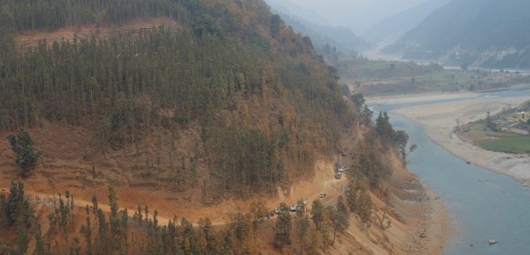 जाजरकोट–डोल्पा सडक खण्डको पासागाड–रिम्नासम्म पिच गर्नका लागि सडकको कच्ची कटान हुँदै। तस्बिर : रासस