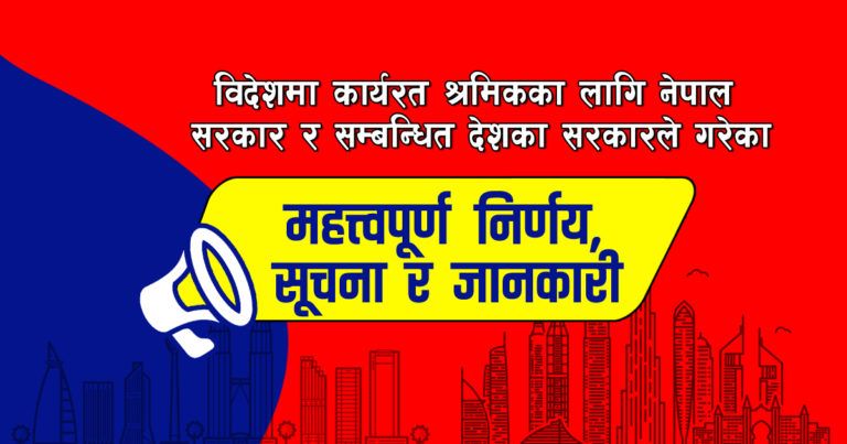 विदेशमा कार्यरत श्रमिकका लागि नेपाल सरकार र सम्बन्धित देशका सरकारले गरेका महत्वपूर्ण निर्णय, सूचना र जानकारी