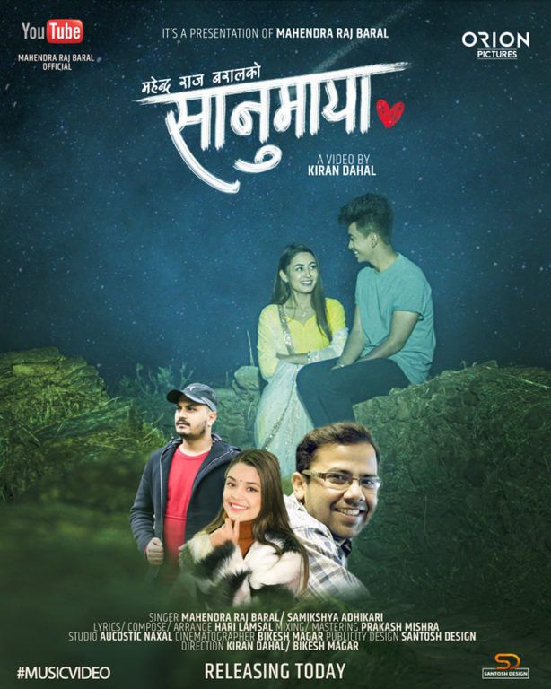 काठमाडौँ : गायक महेन्द्र राज बराल र गायिका समीक्षा अधिकारीको नयाँ गीत ‘सानुमाया ’ गीतको भिडियो सार्वजनिक भएको छ । ‘सानुमाया ’ एक प्रेमपुर्ण कोमल भावको स्पन्दन हो जसमा जिबेश गुरुङ र दिया जी सीको अभिनय रहेको छ ।