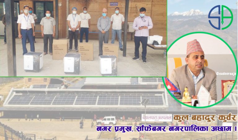 अछाम । जिल्लाको साँफेबगर नगरपालिकाले बयालपाटा अस्पताललाई थप ३ थान अक्सिजन कन्सनटेटर उपलब्ध गराएको छ । ५ थान अक्सिजन कन्सनटेटर अस्पताललाई प्रदान गर्ने योजना अनरुप आज थप ३ थान उपकरण हस्तान्त्ररण गरिएको नगर प्रमुख कुल बहादुर कुवँरले बताए ।