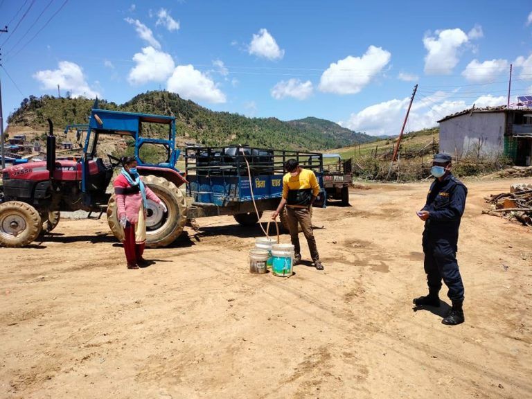 अछाम : जिल्लाको कमलबजार नगरपालिकाले कमलबजार बजार क्षेत्रका कोरोना संक्रमितहरुलाई पिउने पानी बितरण गरेको छ । प्रत्येक संक्रमितको घर दैलोमै आएर ट्रयाक्टर मार्फत प्रत्येक ब्यक्तीलाई ५० लिटरको दरले पानी बितरण गरिएको हो ।