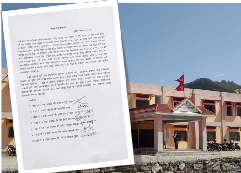 शुक्रबार नगरका ६ जना वडाध्यक्ष र १ जना कार्यपालिका सस्द्स्यले एक विज्ञप्ती जारी गर्दै नगर प्रमुखले कुनै सहकार्य, छलफल र वास्ता नगरी बजेट तोकेर प्रेस विज्ञप्ती निकाल्नु जस्ता कार्यले गम्भीर ध्यानाकर्षण भएको जनाएका छन् ।