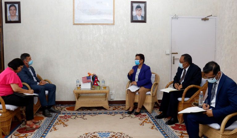 काठमाडाैं । ऊर्जा, जलस्रोत तथा सिँचाइमन्त्री पम्फा भुसालसँग नेपालका लागि अमेरिकी राजदूत र्याण्डी बेरीले शिष्टाचार भेट गरेका छन् । मन्त्रालयमा साेमबार भएको भेटमा उनीहरूबीच आपसी हित र चासोका विषयमा छलफल भएको ऊर्जा मन्त्रीको सचिवालयले जानकारी दिएको छ ।