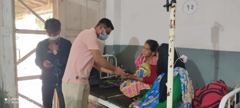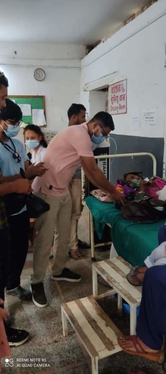 बिरामीलाई फलफुल वितरण गर्दै सहभागी सबैले बिरामीको स्वास्थ्य लाभको कामना गर्नु भएको थियो ।
