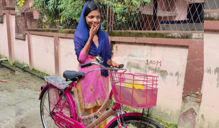 खातुनले साइकल पाएपछि खुसी व्यक्त गर्दै धन्यवाद दिएकी थिइन् । – baarhkhari
