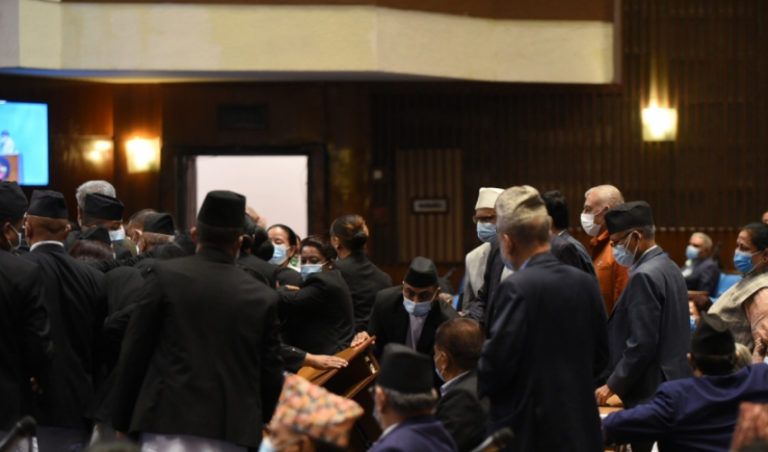 एमाले सांसदहरू आक्रोशित भए। मर्यादापालकसँग घम्साघम्सी चल्यो। यही क्रममा एमाले सांसद रेखाकुमारीले गृहमन्त्री बालकृष्ण खाँणको टेबुलको माइक झिकेर रोस्ट्रमतर्फ हान्ने कोसिस गरिन्। त्यही क्रममा एमालेका अन्य सांसदले उनलाई रोके।