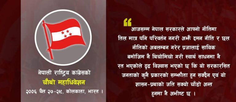 काठमाडौं । नेपालमा जहाँनियाँ राणा शासनको अन्त्य गरी प्रजातन्त्र स्थापना गरी नेपालीलाई स्वतन्त्रता दिलाउने उद्धेश्यले २००३ सालमा स्थापना भएको नेपाली राष्ट्रिय कांग्रेस २००६ सालमा पार्टी एकतापछि नेपाली कांग्रेसमा परिणत भयो ।