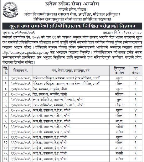 लोक सेवा आयोग गण्डकी प्रदेशले स्वास्थ्यका विभिन्न पदमा ५८४ जनाका लागि विज्ञापन खुलायो