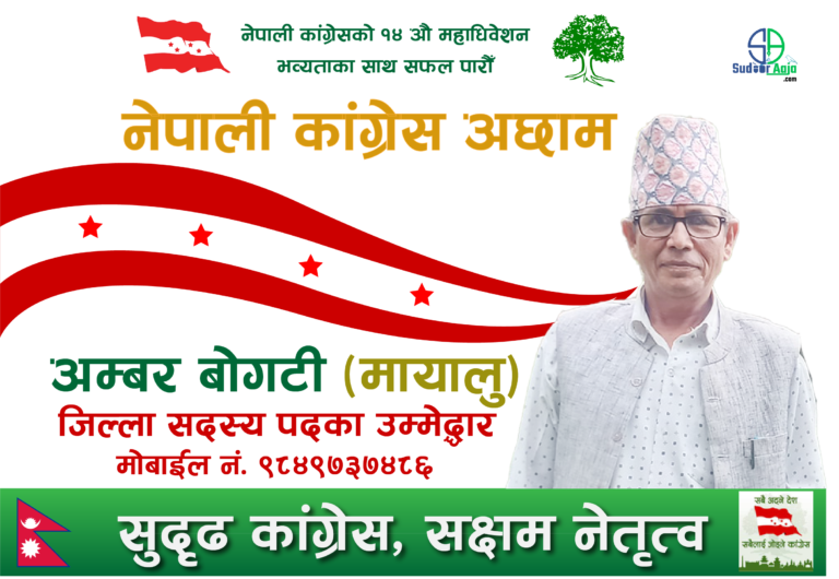 अछाम । नेपाली कांग्रेस जिल्ला कार्य समिती अछामको सदस्य पदका लागि अम्बर बोगटी मायालुले उम्मेद्धवारी घोषणा गरेका छन् ।