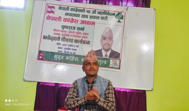 अछाम । प्रजातन्त्र पुनःस्थापनाका लागि भएको विसं २०४६ को जन आन्दोलनका सर्वोच्च कमाण्डर गणेशमान सिंहको २४ औँ स्मृति दिवस अवसरमा स्व. नेता सिंहलाई सम्झदै नेपाली काँग्रेस अछामका जिल्ला कार्यसमिति अछामका सदस्य पुष्पराज शर्माले जिल्लाको क्षेत्र नः २ को क्षेत्रिय सभापति पदका लागी आफ्नो उम्मेद्धारी घोषणा गरेका छन् ।