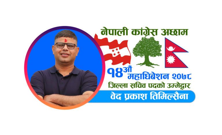 नेपाली कांग्रेस अछामका सहसचिव एवंम प्रवक्ता बेद प्रकाश तिमिल्सैना । उमेरले ६ बर्षकै हुदाँ कांग्रेसका वर्तमान सभापती एवंम प्रधानमन्त्री शेरबहादुर देउवाले बिनायकमा सम्बोधन गरेको कार्यक्रममा पहिलो पटक सहभागी भएका तिमिल्सैनाले कक्षा ४ मा पढ्दै गर्दा नेपाल बिद्यार्थी संघको सदस्यता लिए । नेबिसंघको २०५२/५३ सालमा कमलबजारमा भएको क्षेत्रिय अधिबेशनमा श्री पशुपती माबी चाल्सबाट प्रतिनिधीको रुपमा उनि सहभागी भए ।