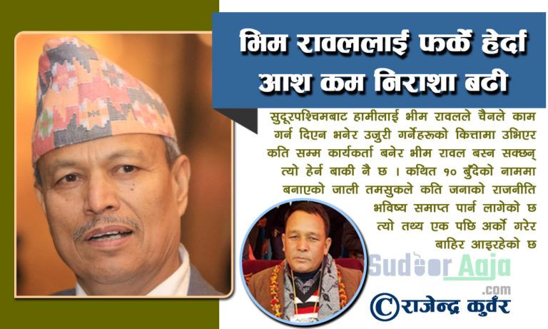 नेपाली राजनीतिकको केन्द्र भागमा सुदूरपश्चिमबाट कम्युनिस्ट राजनीतिमा उदाएका भीम राललाई फर्केर हेर्दा आस कम निराशा बढी छाएको छ । निकै कडा मेहनत अछामी कम्युनिस्ट आन्दोलनमा होमिएका नेताहरूको थोरै आलोचना धेरै समर्थनले नेपाली राजनीतिकको शिखर चुम्न सफल भीम रावल पछिल्लो समयमा ओझेलमा परेका छन् ।