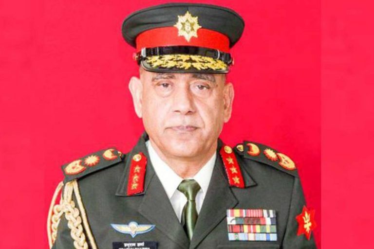 भारतीय स्थल सेनाध्यक्षको मानार्थ दर्ज्यानी ग्रहण गर्न प्रधानसेनापति शर्मा ९ सदस्यीय सैनिक टोलीको नेतृत्व गर्दै सेनाको जहाजमा भारतको राजधानी नयाँदिल्ली जान लागेका हुन्। प्रधानसेनापति शर्मा सेनाको कासा जहाजबाट भारतको नयाँदिल्ली प्रस्थान गर्दैछन्।