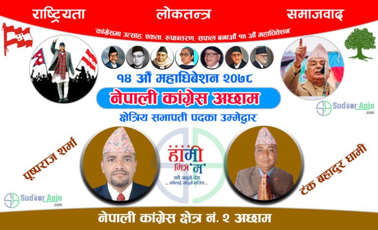 अछाम । नेपाली कांग्रेसको १४ औँ महाधिबेशन अन्र्तगत भोली सोमबार बाँकी रहेका जिल्लामा प्रतिनिधी सभा क्षेत्रिय अधिबेशन हुदैछ । ‘कांग्रेसमा उत्साह, एकता, रुपान्तरण सफल बनाऔँ १४ औँ महाधिवेशन’ नारा लिएको कांग्रेसको १४ आँै महाधिबेशनको सेरोफेरोमा देशव्यापी रुपमा नेता तथा कार्यकर्ताहरु पार्टी भित्र अन्तर संघर्षको दौड धुपमा लागेका छन ।