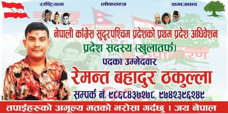 नेपाली काङ्ग्रेस अछामका युवा नेता रेमन्त ठकुल्लाले प्रदेश सदस्य (खुला तर्फ ) पदमा उम्मेदवारी दिएका हुन् ।
