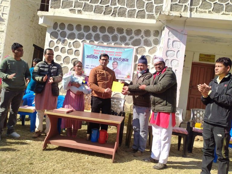 प्रमुख प्रशासकीय अधिकृत शर्माले जन्मदिनको अवसरमा ३३ हजार ३ सय ३३ रुपैया वैद्यनाथ वेद विद्याश्रमका अध्यक्ष डण्डिराज जोशी, प्रार्चाय देवराज उपाध्यायलाई हस्तान्तरण गरे । आर्थिक हस्तान्तरण कार्यक्रममा वोल्दै प्रमुख प्रशाकीय अधिकृत शर्माले अरुलाई बदल्नु छ भने राम्रा, असल र सकारात्मक पक्षको अनुसरण आफैबाट सुरुवात गर्नु पर्नेमा जोड दिए ।